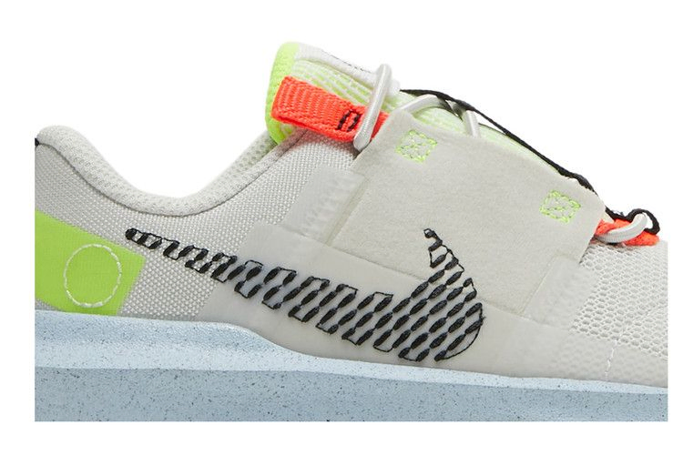 Nike Crater Impact TD 'Light Bone Stone' добавляет яркие акценты в универсальные кроссовки, изготовленные из 20% переработанного сырья по весу. Эластичные шнурки без завязок обеспечивают легкое проникновение в текстильный верх кремового цвета, в состав которого входят волокна переработанного полиэстера. Петлеобразные люверсы образованы ярко-оранжевыми ремешками, которые в основном скрыты под накладкой в средней части стопы, закрепленной контрастной строчкой Volt. Легкая конструкция опирается на пудрово-синюю межподошву Crater Foam, частично состоящую из Nike Grind.