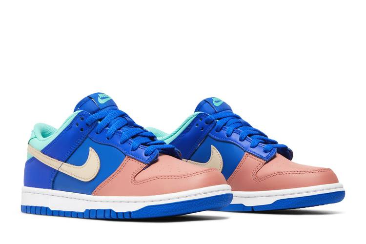 Созданные для больших детей, Nike Dunk Low SE GS "Salmon Toe" имеют основной цвет Hyper Royal, контрастирующий с передней частью стопы Red Stardust, мягким воротником Emerald Rise и фирменным логотипом Swoosh в Sanddrift. Нейлоновый язычок украшен тканым ярлыком Nike, а задник - вышитым знаком Nike. Низкие кроссовки опираются на резиновую подошву с белыми боковинами и подошвой королевского синего цвета.