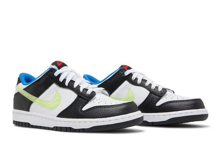 Nike Dunk Low GS "White Light Lemon Twist", предлагаемые исключительно в детских размерах, добавляют яркие акценты в нейтральную расцветку ретро-силуэта. Верх из гладкой белой кожи с накладками из черной кожи и пушистым неоново-зеленым логотипом Swoosh, на который можно прикрепить нашивку "N". Внутренняя часть выполнена из дышащей сетки цвета Signal Blue, а на нейлоновом язычке красуется черно-красная бирка Nike. Прочная двухцветная резиновая подошва поддерживает низкие кроссовки.