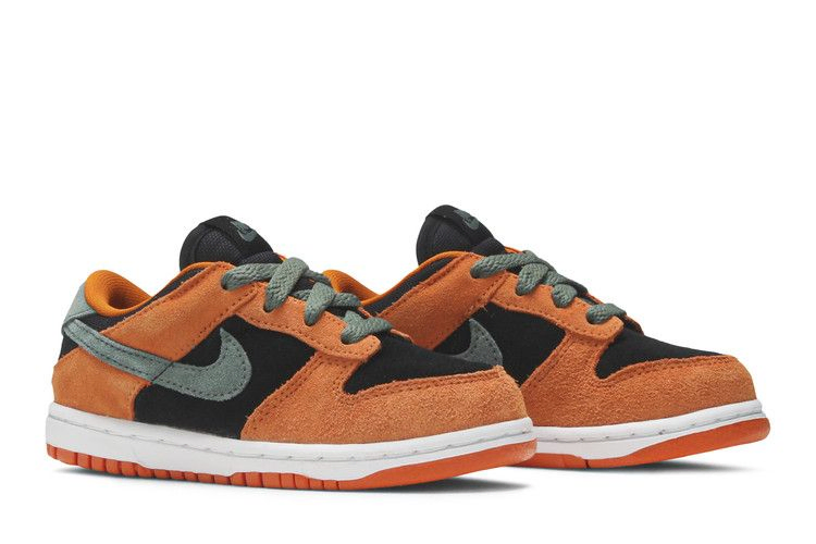 Созданные для малышей, Nike Dunk Low SP TD 'Ceramic' возвращают одну из самых желанных расцветок CO.JP из серии "Гадкий утенок", выпущенной исключительно в Японии в 2001 году. Эта сжатая версия повторяет внешний вид оригинала: верх из черно-оранжевой замши с контрастными вкраплениями зеленого цвета нори на шнурках, язычке пятки и фирменном логотипе Swoosh. Сплетенная бирка Nike украшает сетчатый язычок, который в сочетании с мягким воротником обеспечивает удобную посадку для маленьких ножек.