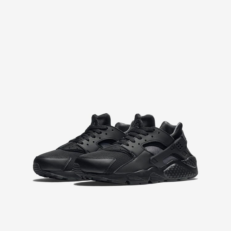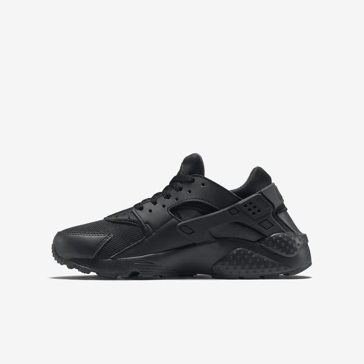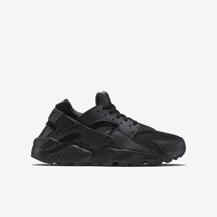 Air Huarache впервые появились на прилавках магазинов в 1992 году с голым дизайном, направленным на обеспечение максимально комфортной посадки. С тех пор Nike выпустил ряд цветовых решений, чтобы разнообразить внешний вид кроссовок. Модель Huarache Run GS имеет черный сетчатый верх и черные неопреновые акценты. Кроссовки также могут похвастаться классической синтетической пяткой для дополнительной поддержки и мягким язычком и воротником для дополнительного комфорта.