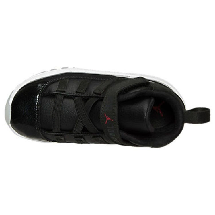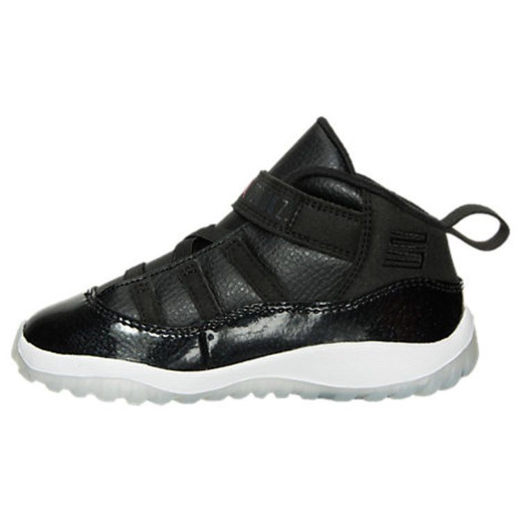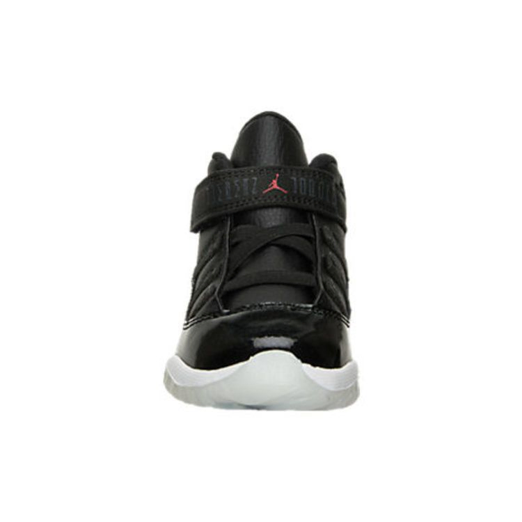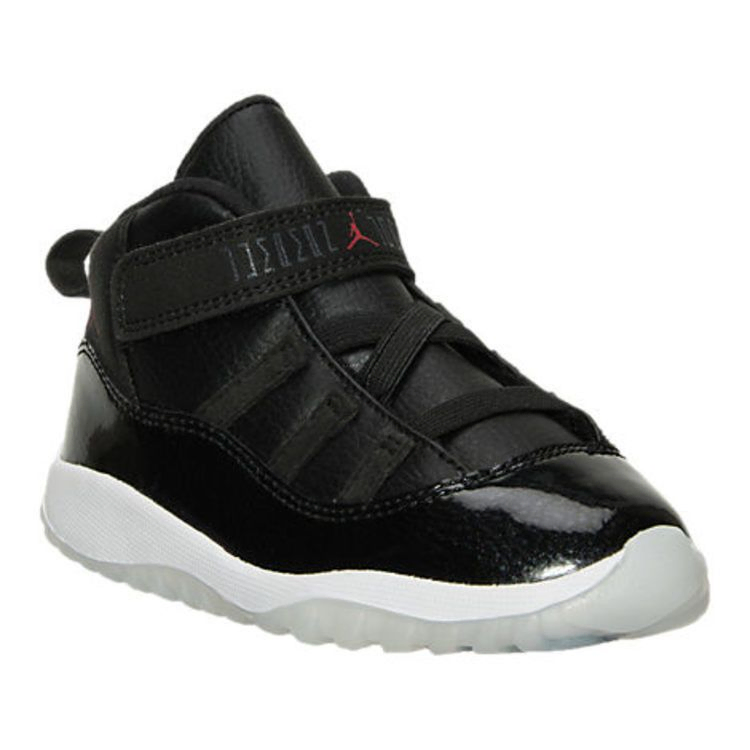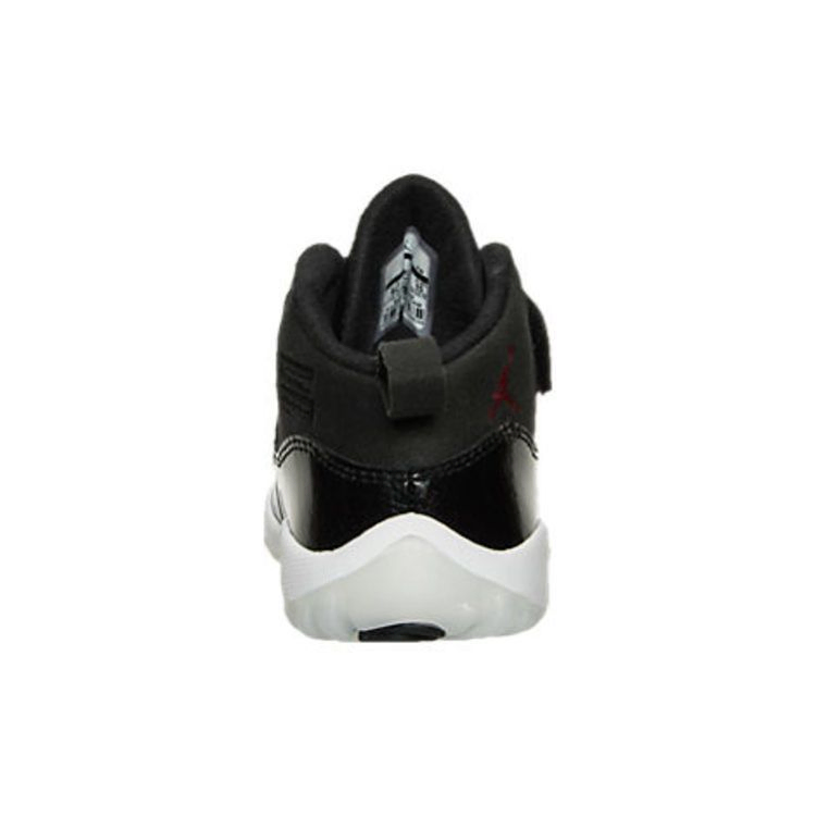 Кроссовки Jordan 11 Retro BT '72-10' обновляют оригинал 1995 года, вдохновляясь легендарным сезоном "Быков" 72-10. Эта детская версия является дубликатом взрослой модели, выпущенной в декабре 2015 года. Верх кроссовок выполнен из потрескавшейся кожи и покрыт лакированным брызговиком, украшенным металлическими хлопьями. Регулируемый ремешок с крючками и петлями украшен красными деталями Jordan Brand, а также пяткой и подошвой, что придает им культовый вид.