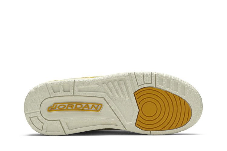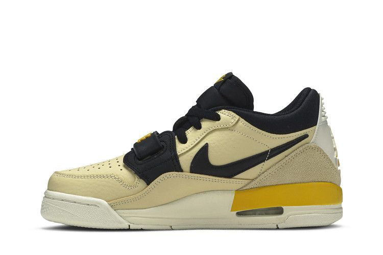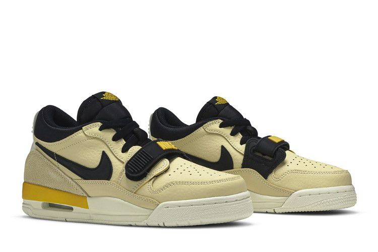 Jordan Legacy 312 - это детские кроссовки с низким верхом, созданные Доном Си, в которых использованы элементы Air Jordan 1 и Air Jordan 3. Выпущенные в апреле 2019 года в цветах Pale Vanilla и University Gold, они имеют кожаный верх, черный Nike Swoosh на задней панели и ремешок на носке. На язычке и пятке красуется фирменный знак Jordan, замшевая накладка заменяет привычный слоновий принт, а амортизация обеспечивается за счет заметного блока Air-Sole.