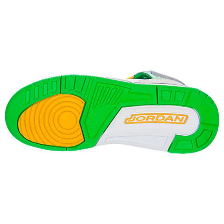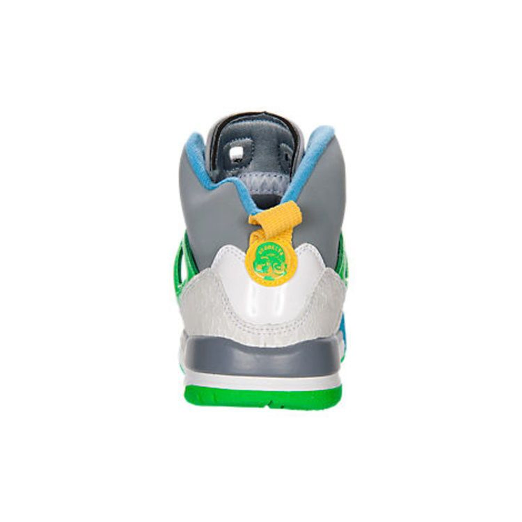 Гибридные Air Jordan Spizike GS взяли элементы из шести других силуэтов бренда в памятном дизайне, вдохновленном персонажем Спайка Ли Марсом Блэкмоном. Эта детская модель, выполненная из смешанной кожи, получила переключенную систему шнуровки, сетку на четверти и деконструированный язычок с ярким Jumpman. Лазерная графика на внутренней стороне, ядовито-зеленая клетка и портрет на пятке добавляют фирменных отличий. Промежуточная подошва и резиновая подошва с воздушными вставками.