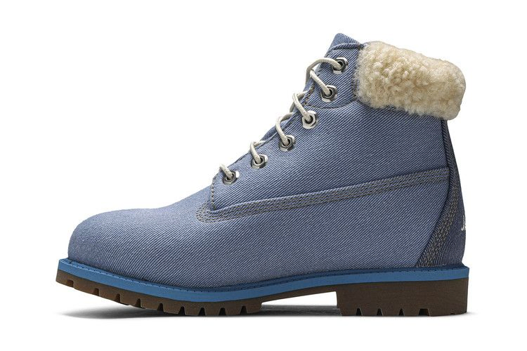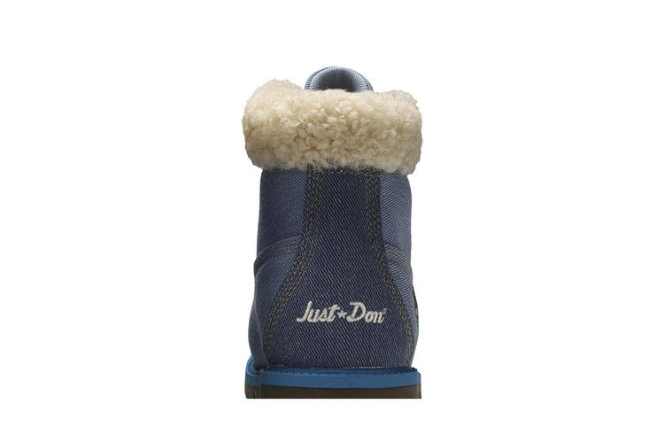 В модном обновлении классических рабочих ботинок 1973 года, стилизованном под детские, ботинки Timberland Just Don x 6 Inch Fabric Boot Junior 'Blue' заменяют классическую конструкцию из зернистой кожи на водонепроницаемый джинсовый верх. Созданная в сотрудничестве с влиятельным дизайнером уличной одежды Доном Си, эта модель имеет те же характеристики, что и взрослая версия, - от воротника из искусственного меха и двухцветной подошвы до вышитого бренда "Just Don" на шнурке и пятке.
