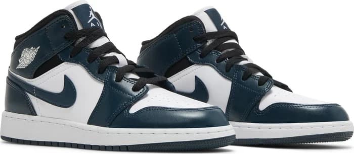 Модель Air Jordan 1 Mid GS Armory Navy, предлагаемая в подростковых размерах, придает новую энергию классическому силуэту благодаря обновленной цветовой палитре. Кожаный верх с белой основой, темно-зелеными накладками и черным воротником. Фирменные элементы включают значок Jumpman на тканом язычке и стандартный логотип Wings на боковой лодыжке. Кроссовки опираются на прочную резиновую подошву с амортизацией Air-sole под пяткой.