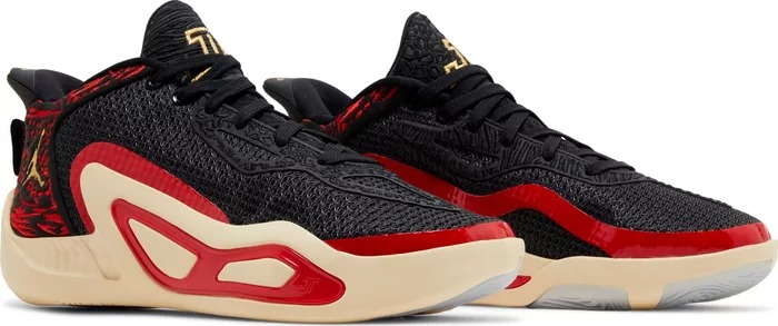 Air Jordan Tatum 1 GS Zoo - это первые фирменные кроссовки Джейсона Тэйтума для подростков, выполненные в оригинальной цветовой гамме. Воздушная черная сетка с красными акцентами использована в легком верхе, усиленном каркасом из TPU, который избавляет от необходимости использовать лишние материалы. На язычке вышит личный логотип Тэйтума, а на боковине пятки - тисненый логотип Jumpman. В передней части подошвы размещен большой блок Zoom Air из пеноматериала, обеспечивающий пружинистую амортизацию и отзывчивость на корте.- Цвета: Black/Metallic Gold/University Red/Beach