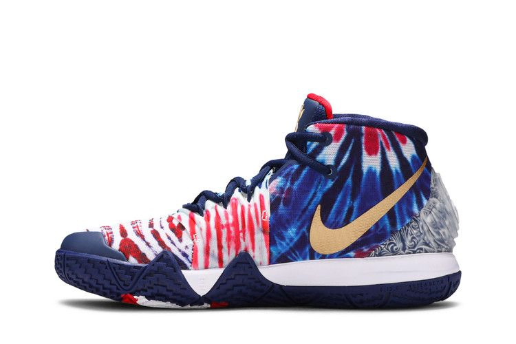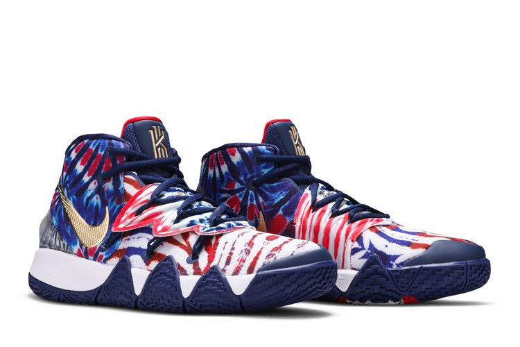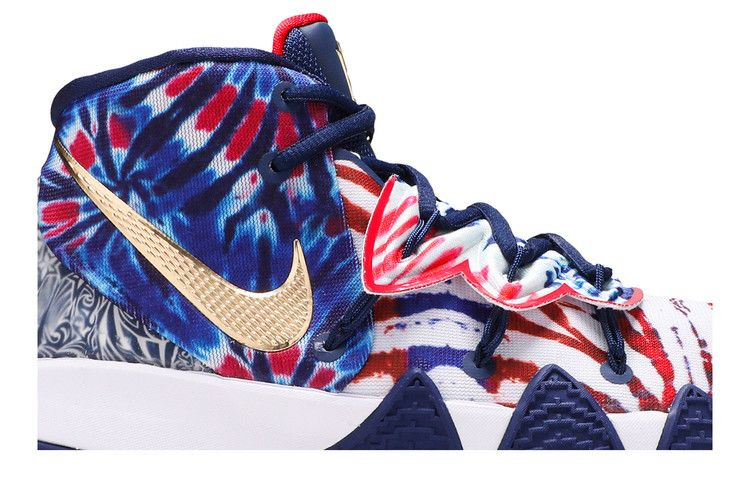 Созданные для больших детей, Nike Kybrid S2 GS "What The USA" украшены патриотическим принтом в стиле "тай-дай" и представляют собой гибридный силуэт, сочетающий в себе черты Kyrie 4, 5 и 6. Золотисто-металлическая отделка украшает фирменные элементы кроссовок, включая текстурированный логотип Swoosh и личный логотип Кайри Ирвинга на язычке. Легкая амортизация обеспечивается мягкой подошвой из пенополиуретана, а резиновая подошва с боковыми стенками обеспечивает превосходное сцепление с поверхностью.