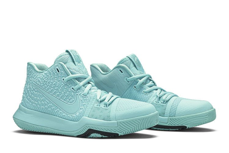 Эта расцветка, посвященная Tiffany's, отдает дань уважения влиятельным женщинам по всему миру. Модель Kyrie 3 GS 'Aqua' имеет трикотажный верх цвета Aqua с фирменными деталями Kyrie 3 на боковине, накладку на передней части стопы для придания дополнительной структуры и большой украшенный драгоценными камнями Swoosh сбоку. Кроссовки также украшены контрастными черно-белыми деталями на подошве и поставляются с дополнительным комплектом белых шнурков.