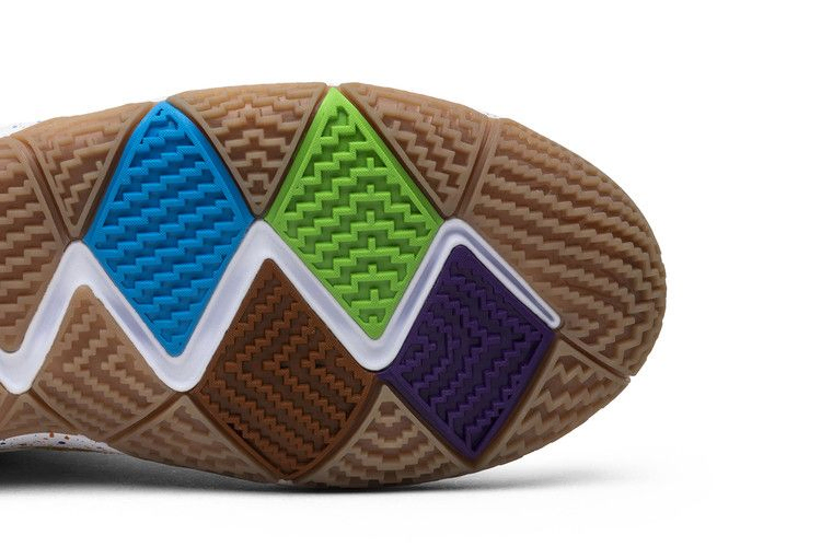 Силуэт Kyrie 4 Cereal Pack, представленный в рамках серии Kyrie 4 Cereal Pack, отражает его любовь к хлопьям в цветовой палитре, вдохновленной Cinnamon Toast Crunch. Крапчатая межподошва и Swoosh повторяют тона надписей на коробке с хлопьями, а на язычке вышит логотип Cinnamon Toast Crunch.
