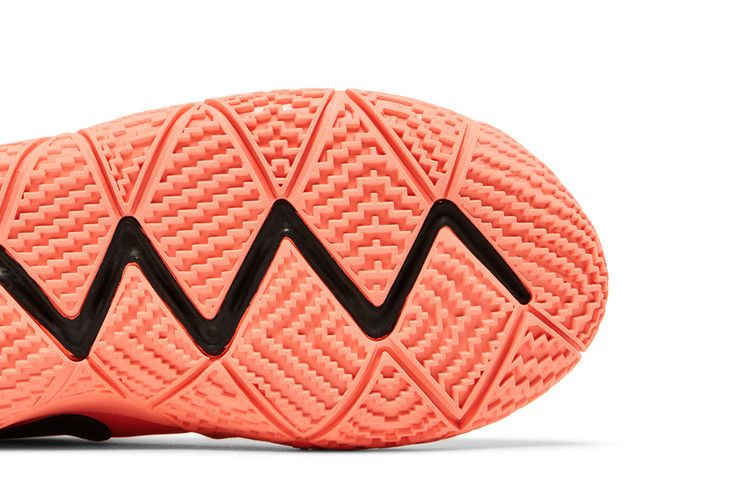 Для детей Nike Kyrie 4 GS представлены в расцветке "Atomic Pink" - полностью розовой, с сетчатой отделкой носка и язычка. Яркие оттенки контрастируют с черными акцентами на логотипах Swoosh и Kyrie.