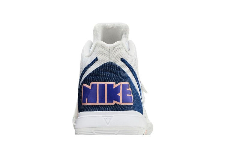 Kyrie 5 GS "Have A Nike Day" - это детские кроссовки с белым сетчатым верхом и разноцветными акцентами. Брендинг Kyrie Irving расположен на язычке, а пятна краски и смайлик со Swoosh в виде рта - на накладке шнурка. Боковая панель с логотипом Swoosh и пятка выполнены из материала, напоминающего джинсовую ткань, с ретро-брендингом Nike на пятке. На носке появляются слова "hungry" и "humble", а разноцветная разнонаправленная подошва завершает образ.