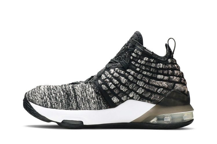 Модель Nike LeBron 17 BG "In the Arena", созданная для больших детей, представляет собой нейтральный вариант 17-й фирменной модели Леброна Джеймса. Дополняющие друг друга черные и серые тона преобладают в верхе из трикотажа Knitposite с дышащей трикотажной основой, укрепленной термоформованными нитями для дополнительной прочности и поддержки. Верхняя часть кроссовок опирается на белую подошву из пеноматериала с мягкими подушечками Max Air в пятке и пружинящими подушечками Zoom Air в носочной части.