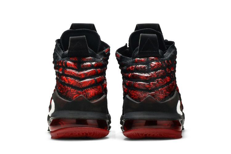 Созданные для больших детей, Nike LeBron 17 GS "Infrared VI" имеют дизайн, вдохновленный культовым цветовым решением Air Jordan. Двухцветный трикотажный верх с черной трикотажной основой и красными термоформованными нитями расположен на пенопластовой подошве с красным блоком Max Air в пятке и видимой амортизацией Zoom Air в носочной части. На язычке и горле красные замки для шнурков и надпись "23" из красной синели.
