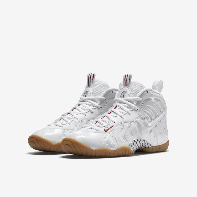 Компания Nike позаимствовала некоторые яркие цвета модного дома Gucci, переработав знаменитые красные и зеленые акценты в Little Posite Pro. Кроссовки для школьников имеют преимущественно белую окраску внешнего молдинга и накладки на глаза из нубука. Полоска на язычке включает в себя красные и зеленые линии, спускающиеся к заднику, а подошва из жвачки завершает предложение роскошной отделкой.