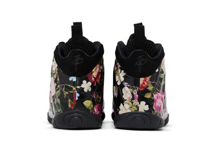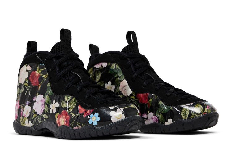 Популярный силуэт Пенни Хардауэя, Nike Air Foamposite One, был освежен и обновлен для выпуска в 2019 году ко Дню святого Валентина. Кроссовки Nike Little Posite PS 'Floral' - это детская версия, которая заимствует детали дизайна у взрослой модели и реконструирует ее для развивающихся ног. Верх кроссовок Foamposite украшен темным цветочным узором. Амортизирующая подошва из пеноматериала и резиновая подошва усиливают дизайн.