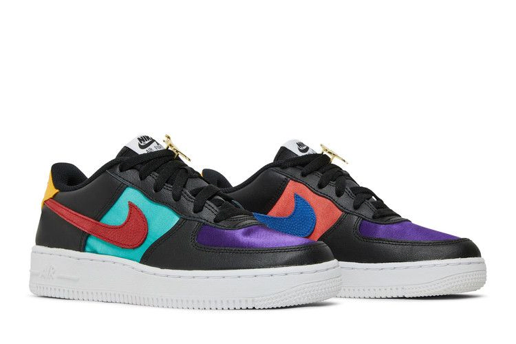 Модель обуви NBA x Nike Air Force 1 '06 LV8 EMB GS WNBA, выпущенная в подростковом размере, посвящена 75-летию лиги и выполнена в ретро-палитре 90-х годов. Винтажные кроссовки выполнены из черной кожи с разноцветными вставками и красными логотипами Swooshes. Язычок украшает тканая бирка с надписью 75th anniversary. Кроссовки опираются на чистую белую резиновую подошву, подчеркнутую белой строчкой и дополненную скрытой амортизацией Air-sole в пятке.- Цвета: White/Bright Crimson/Black/White