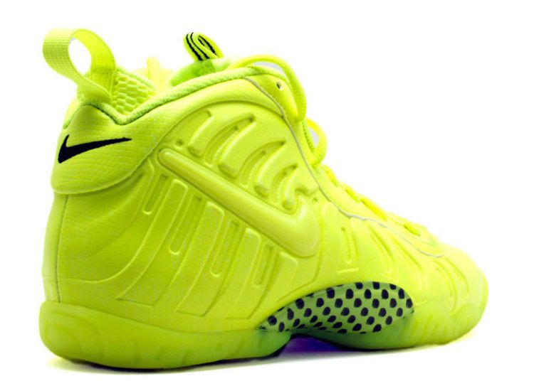 Впервые представленная в 2014 году, неумолимо яркая Volt-версия Air Foamposite Pro почти полностью выполнена в самом ярком оттенке Nike. Однотонная схема простирается от стельки до полупрозрачной подошвы, прерываясь лишь на минимальные намеки на черный цвет на язычке, пластине голенища и Swoosh на подошве.