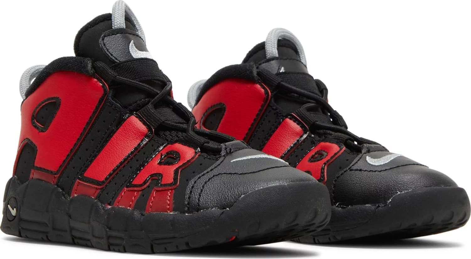 Созданные для нового поколения поклонников НБА, Nike Air More Uptempo '96 TD 'Split' отдают дань уважения Скотти Пиппену, спортсмену НБА, который носил эти кроссовки во время легендарного сезона "Буллз" 72-10. На верхней части из черного нубука красным шрифтом крупными буквами написано "AIR", а личный логотип Пипа украшает выступ на пятке. Верхняя часть кроссовок фиксируется с помощью шнурков без завязок и эластичных ремешков, которые работают с двойными петлями, позволяющими маленьким ножкам легко проскальзывать в обувь.- Цвета: Black/Midnight Navy/White/University Red
