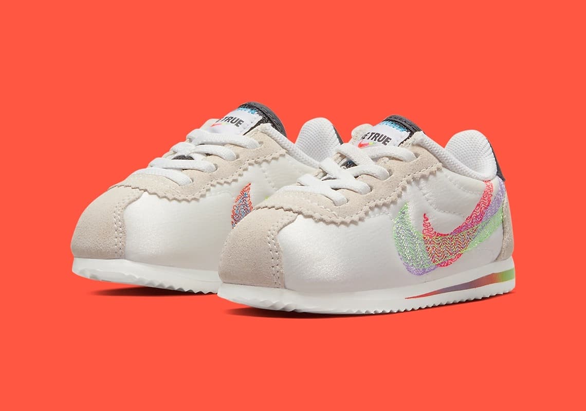 Расцветка Nike Cortez 'Be True 2022' отдает дань уважения сообществу ЛГБТ с обновленным дизайном и яркими акцентами. Ретро-кроссовки имеют белый нейлоновый верх с тональными замшевыми накладками и перекрывающимися Swooshes в радужном спектре цветов. Брендинг Be True размещен на язычке и носочной части, в то время как несовпадающие слова Nike украшают черные кожаные язычки на пятке с ярко-красной и желтой вышивкой. Легкая амортизация обеспечивается за счет мидсоли из пеноматериала с градиентной раскраской, продолжающей традиционную радужную тему.- Цвета: Summit White/Black/Multi-Color