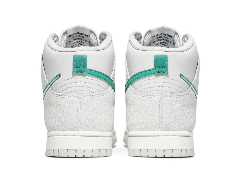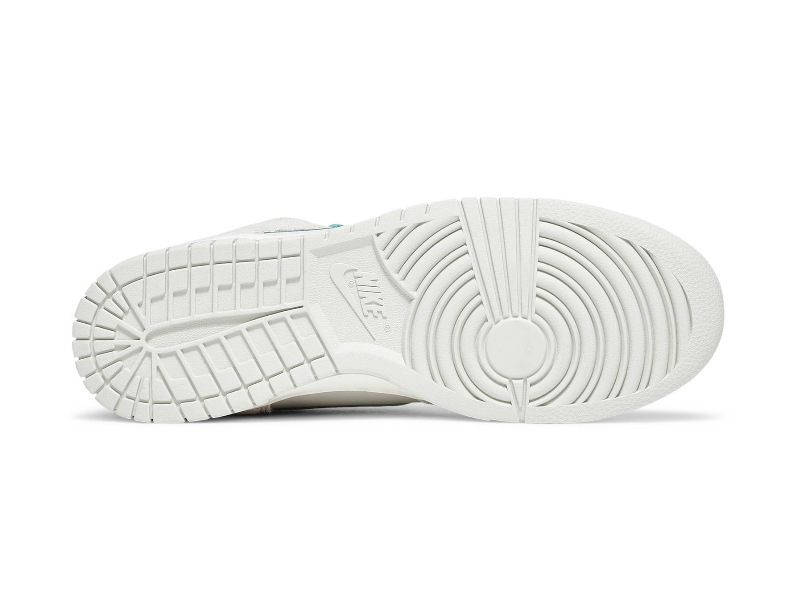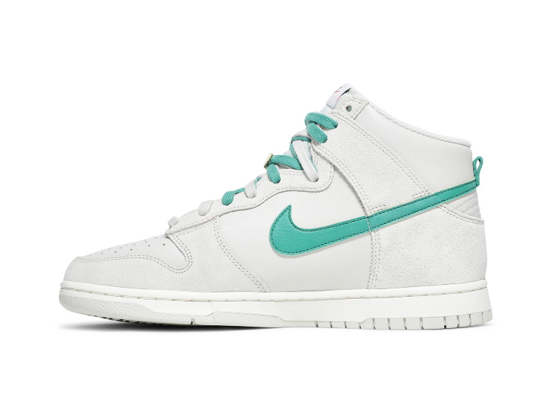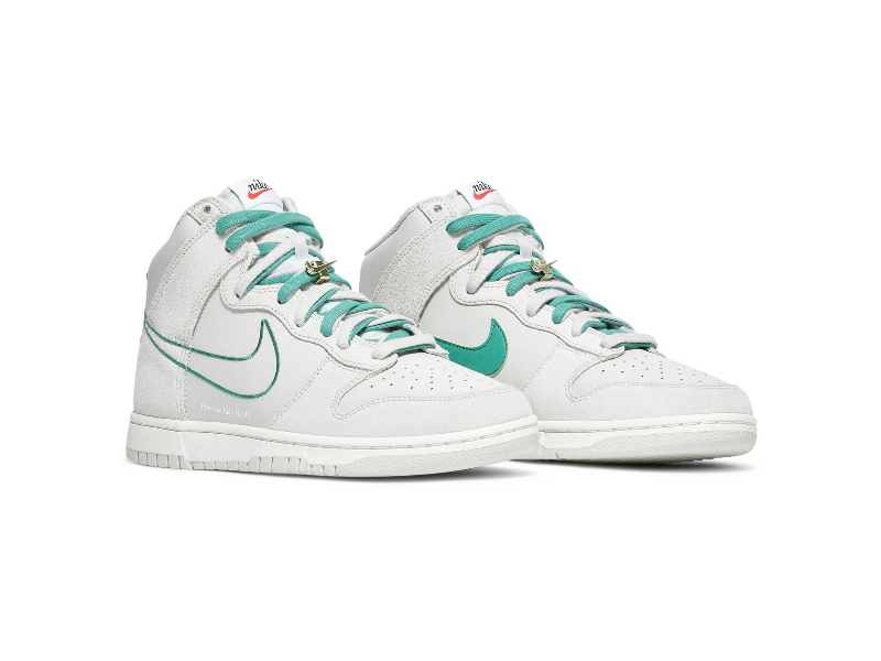 Модель Nike Dunk High SE GS «Green Noise» взята из коллекции обуви, посвященной 50-летию Nike Swoosh. Ретро-силуэт имеет верх из кожи кремового цвета с замшевыми накладками в тон в области передней части стопы и пятки. Зеленый кожаный логотип Swoosh украшает внутреннюю сторону кроссовок, а на противоположной стороне имеется логотип Swoosh, обведенный зеленой вышивкой. Белая надпись на четверти панели гласит: «Первое использование 18 июня 1971 года». Высокий верх закреплен сдвоенными зелеными и белыми шнурками.- Цвета: Light Bone/Green Noise