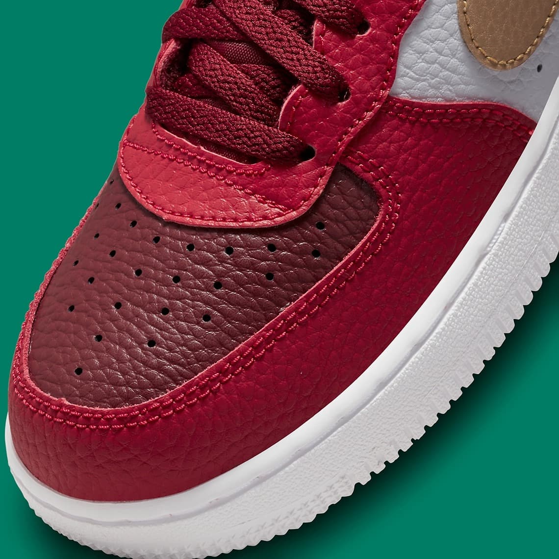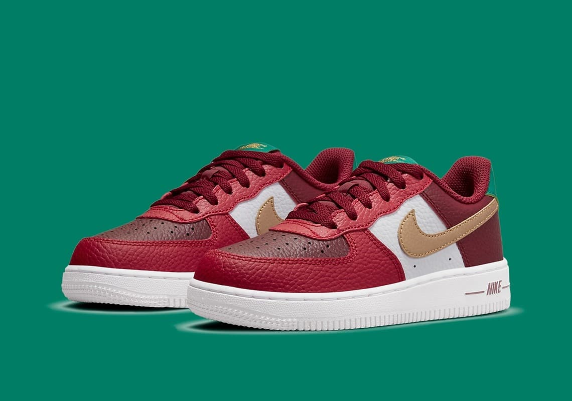 Кроссовки Nike Force 1 PS Christmas представляют собой замену кроссовок для взрослых. В соответствии с названием, эта детская обувь включает в себя верх красного цвета с зелеными акцентами и логотипы Swooshes и Nike в золотом исполнении в честь Рождества.- Цвета: Team Red/Gym Red/White/Metallic Gold