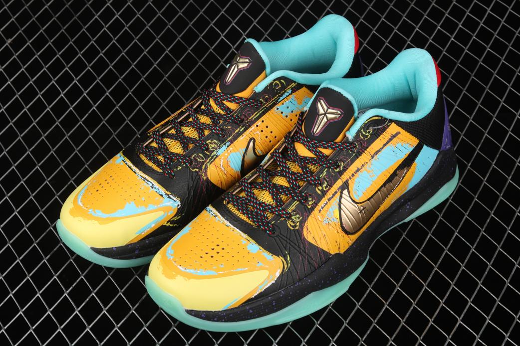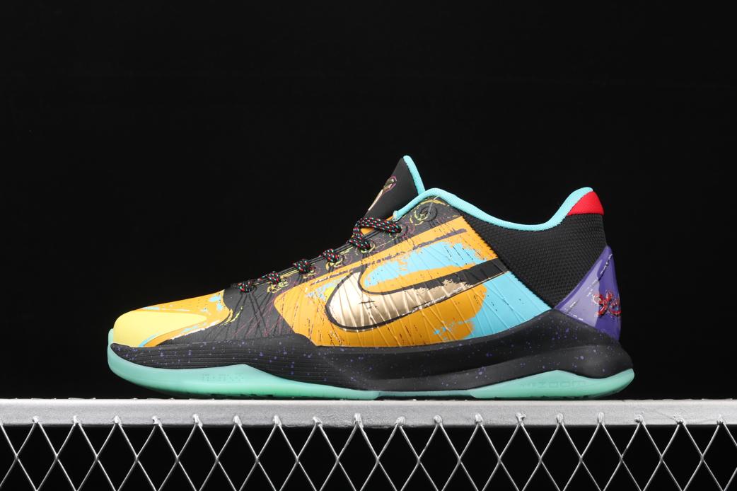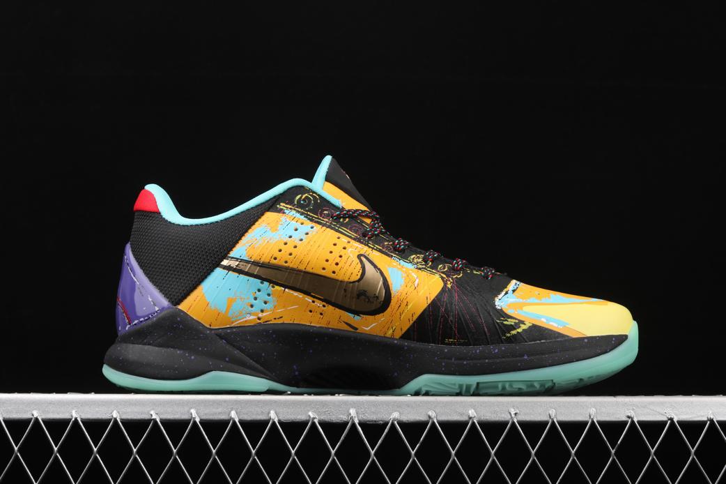 Заказать поиск кроссовок Nike Kobe 5 GS Prelude с бесплатной доставкой. Nike Zoom Kobe 5 Prelude, выпущенный в составе Prelude Pack от Nike в январе 2014 года, отражает влияние Коби Брайанта на популярную культуру в цветовой гамме, вдохновленной поп-артом. Многоцветный верх выполнен по технологии Flywire для фиксированной посадки, а золотой Swoosh отдает дань уважения чемпионскому кольцу, выигранному Брайантом в Kobe 5. Он также имеет фиолетовые крапинки на черной подошве. Ознакомьтесь с подробными фотографиями и закажите эту расцветку Nike Kobe 5 GS Prelude в розничных магазинах или в сервисе Slamdunk