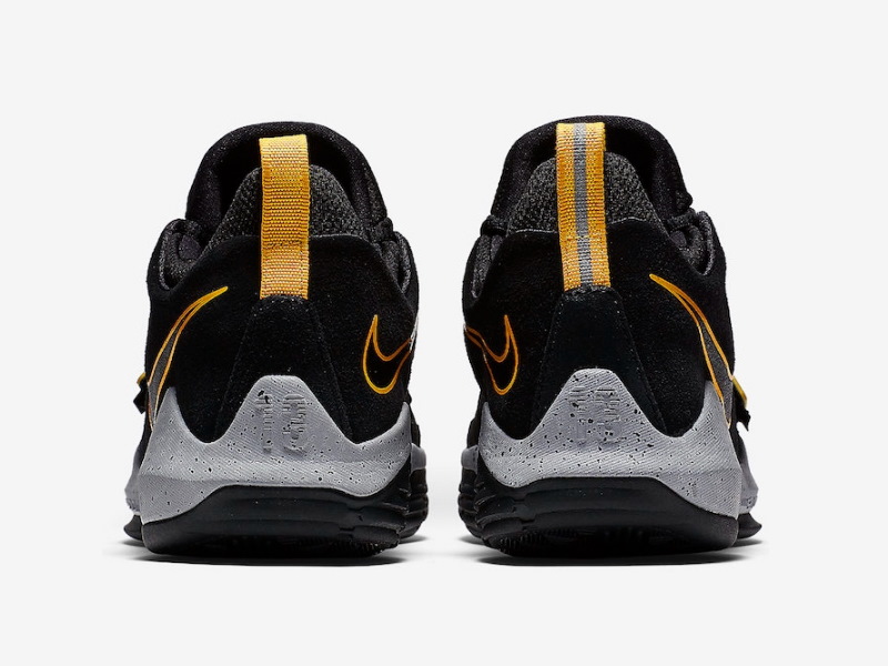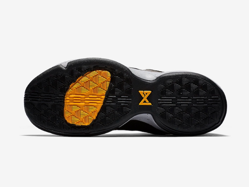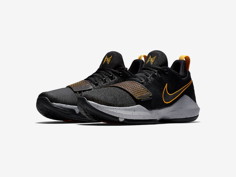 В дизайне Nike PG 1 Black Gold использованы замша и сетчатый верх на черной основе, подходящая подошва и контрастная серая мидсоль, обувь использует желтый оттенок на контуре Swoosh, пятке, ремешке в средней части стопы и акцентах подошвы.- Цвета: Black/Black-University Gold