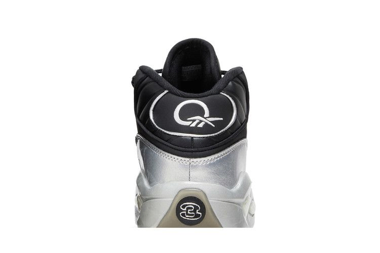 Верхняя часть Reebok Question Mid Big Kid "I3 Motorsports" выполнена из черной матовой искусственной кожи с серебристыми металлическими акцентами, что отражает двухцветную отделку, часто встречающуюся на квадроциклах и мотоциклах. Логотип Allen Iverson "Question" вышит на язычке пятки и дополняет брендинг Reebok Vector на задней панели и язычке, последний имеет сетчатую конструкцию для улучшения воздухообмена. Кроссовки опираются на промежуточную подошву из пеноматериала со скульптурными боковыми стенками, имитирующими амортизацию Hexalite оригинала.