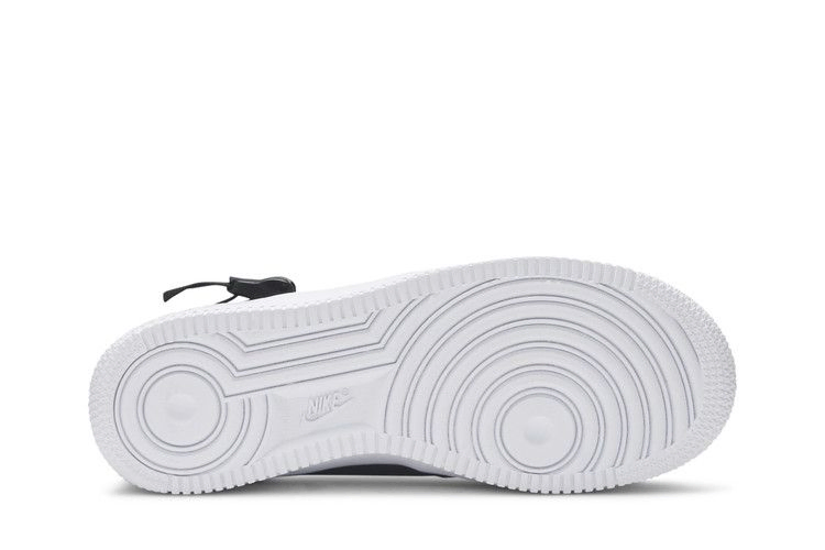 SF в Nike SF Air Force 1 Mid GS "Black" означает "Special Field", что говорит об особенностях, вдохновленных военным стилем, которые обновляют культовый профиль. Это издание включает в себя дополнительные штрихи в стиле utility, начиная с верха из зернистой кожи и баллистического нейлона. Ремешки на щиколотках, молнии на пятке и веревочные шнурки усиливают тему. Это издание рассчитано на детей и имеет классическую конструкцию подошвы AF1.