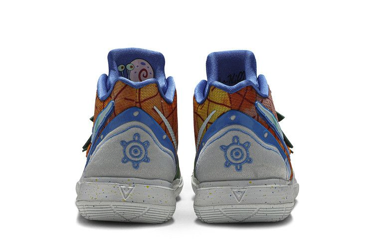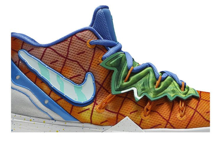 Модель SpongeBob SquarePants x Nike Kyrie 5 GS "Pineapple House", которая появится в октябре 2019 года, вдохновлена детской любовью Кайри Ирвинга к мультфильму. Детские кроссовки воплощают дом из клетчатого текстиля с зелеными листьями на шнурках и корабельным колесом, вышитым на пятке. Тематические детали включают графический Swoosh, лицо титульного персонажа на стельке и его питомца Гэри под язычком. Промежуточная подошва с воздушной подушкой Zoom Air расположена на резиновой подошве в крапинку.