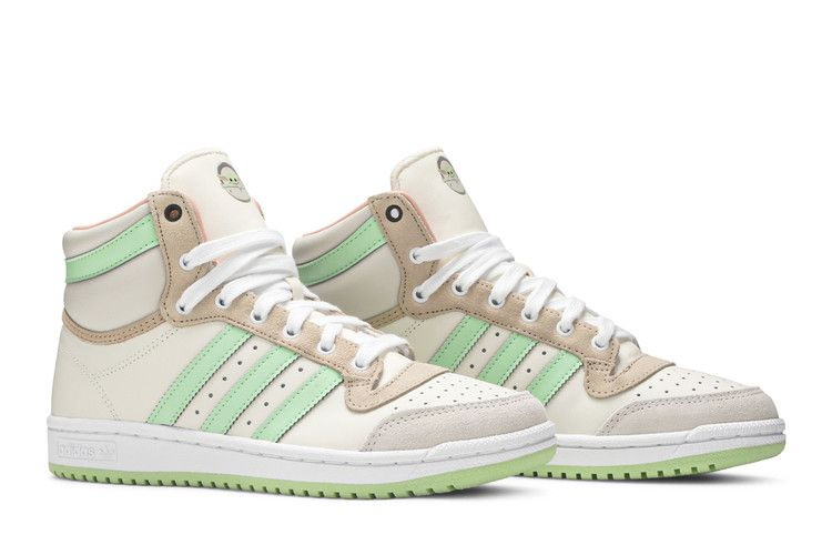 Модель Star Wars x adidas Top Ten High Kids "The Child", выпущенная в рамках коллекции "The Mandalorian", представляет собой винтажные кроссовки, дизайн которых вдохновлен персонажем, известным как малыш Йода. Внешность подкидыша определяет характерную палитру кроссовок, состоящую из контрастных зеленых и бежевых тонов на гладком кожаном верхе. На язычке напечатана графика, изображающая улыбающегося Ребенка в его плавающей капсуле.