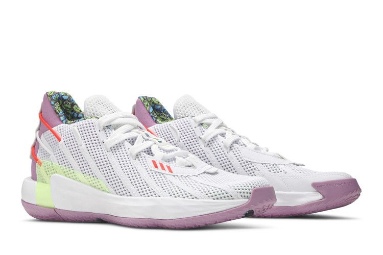 Созданные для больших детей, Toy Story x adidas Dame 7 J "Buzz Lightyear" вышли в рамках капсульной коллекции, посвященной кинофраншизе Pixar. Седьмые фирменные кроссовки Дамиана Лилларда выполнены в цветовой гамме, повторяющей костюм космического рейнджера Базза Лайтера. Внутренняя подкладка покрыта графикой инопланетян, а светящиеся в темноте акценты позволяют кроссовку оживать при выключении света. Розовая резиновая подошва имеет надпись "Andy", сделанную от руки.