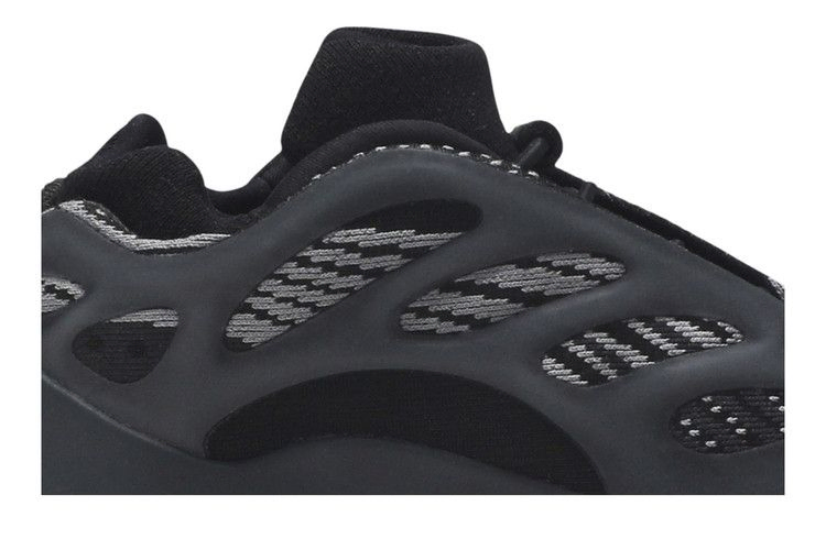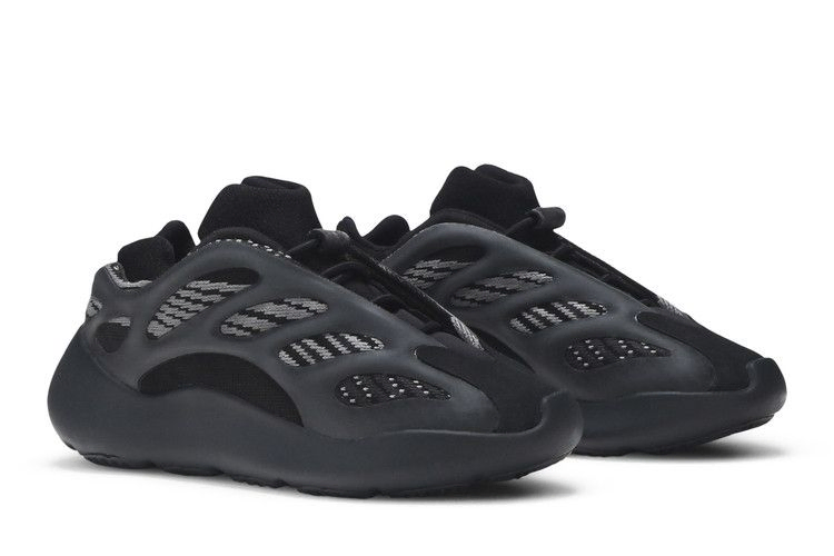 adidas Yeezy 700 V3 Infant 'Alvah' демонстрирует скрытую отделку во втором цветовом варианте силуэта. Верх из черной и серой монофиламентной сетки со светящимся в темноте RPU-экзоскелетом для структурной поддержки. Внутренняя стелька обеспечивает плотную посадку, а светоотражающие детали у основания язычка обеспечивают дополнительную видимость. Промежуточная подошва выполнена из легкого материала EVA, который виден через вырезы в резиновой подошве.