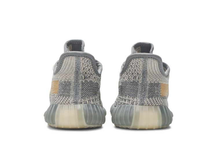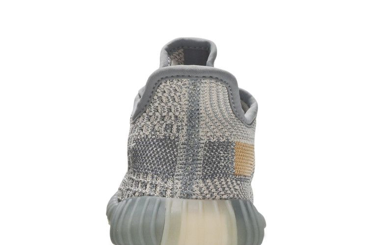 Верхняя часть adidas Yeezy Boost 350 V2 Kids "Israfil" выполнена из дышащего материала Primeknit, сочетающего в себе смесь нитей бледно-желтого и голубовато-серого оттенков, с различными ткаными узорами, создающими эффект лоскутного шитья. Оранжевая боковая полоса из мононити после окрашивания придает яркий оттенок боковой стороне кроссовка. Эластичные шнурки без завязок фиксируют минималистичный силуэт на полноразмерной подошве Boost, усиленной полупрозрачной резиновой подошвой.