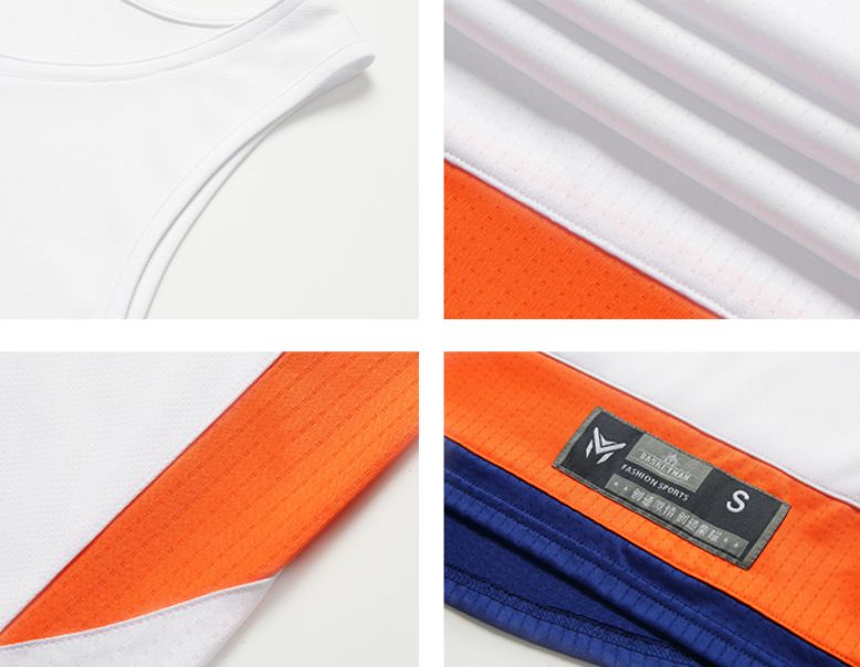 Форма 2019 BasketMan NY Knicks White Uniform имеет белую расцветку с оранжевой и синей отделкой на символике команды Нью-Йорк Никс. В верхней части майки находится V-образный вырез, а в нижней части и по бокам - яркая отделка. Шорты имеют такую же оранжево-белую расцветку с синей отделкой по нижнему краю. Эта игровая форма выполнена из легкого материала, что обеспечивает ее дышащими и воздухопроницаемыми характеристиками, которые необходимы в тренировочном и игровом процессе.- Материал: спортивный трикотаж