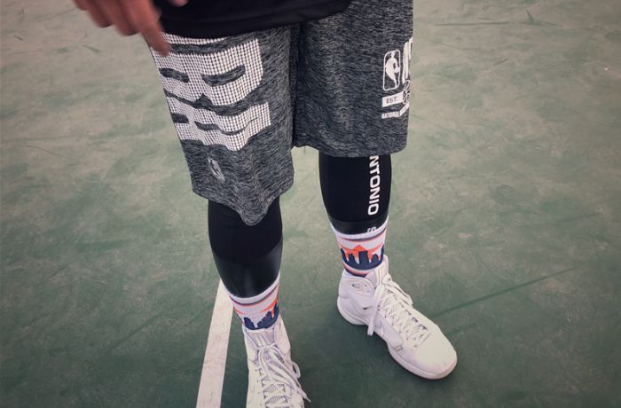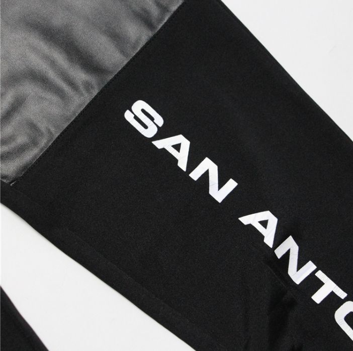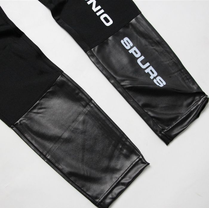 Мужские спортивные баскетбольные фитнес-штаны из высокоэластичной ткани с символикой клуба Сан Антонио Спёрс в чёрной расцветке. Подходит для роста от 170-190 см и весом от 60 до 80 кг. Существует вариант в белой расцветке.- Материалы: эластичная PU ткань