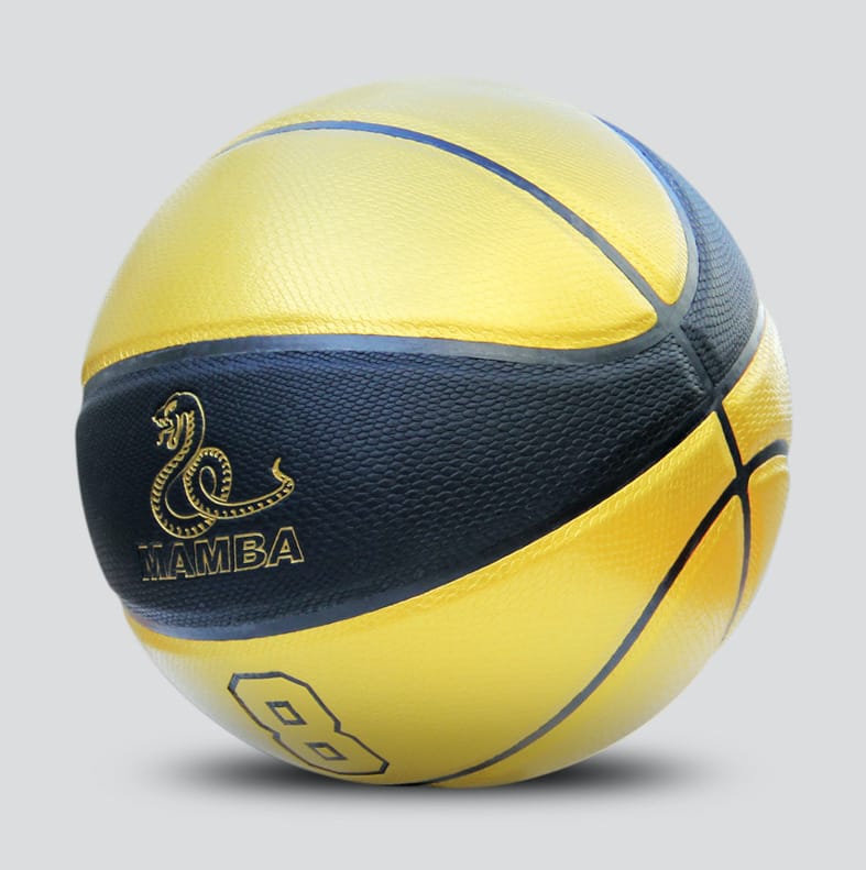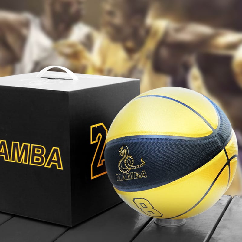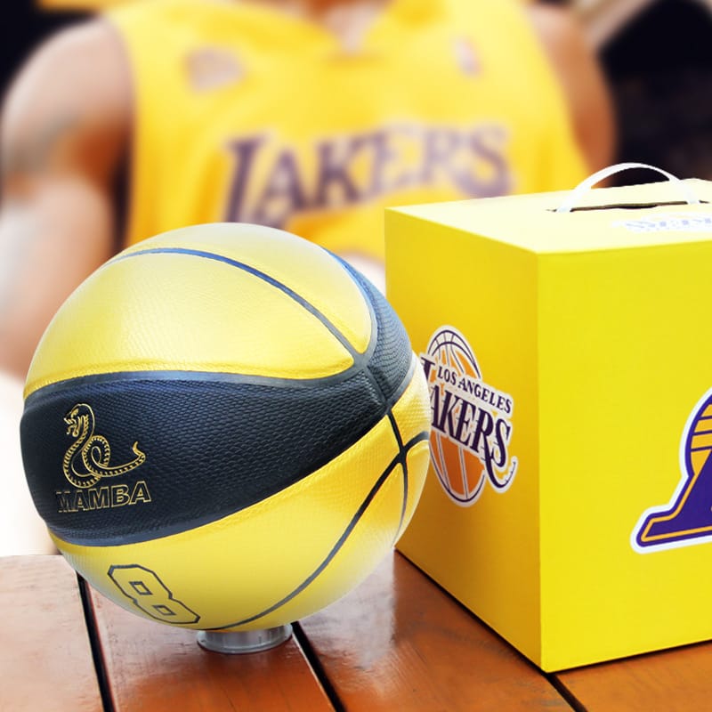 Баскетбольный мяч Jinduo Black Mamba Snake Ball посвящен Коби Брайанту и создан в черно-желтой гамме. Текстура поверхности напоминает змеиную кожу, а на мяче есть изображение игрока и его номера 8 и 24. Он подходит для игры как в зале, так и на открытом воздухе. Мяч упакован в подарочную коробку с необходимыми аксессуарами.
