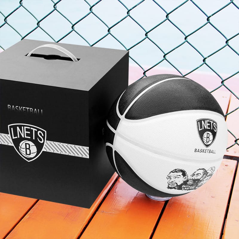 Баскетбольный мяч Jinduo Nets Logo Ball посвящен клубу Brooklyn Nets. Он создан в фирменной черно-белой гамме, а дизайн дополнен забавным изображением логотипа и легендарных команды. Он подходит для игры как в зале, так и на открытом воздухе. Мяч упакован в фирменную подарочную коробку вместе с необходимыми аксессуарами.