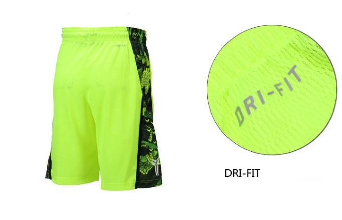 Мужские тренировочные шорты Nike Kobe Elite в салатовом цвете с технологией Dri-FIT. Эластичный пояс на шнурке. Логотип Мамбы на правой коленке, на левой - лого Найк.- 100% полиэстер