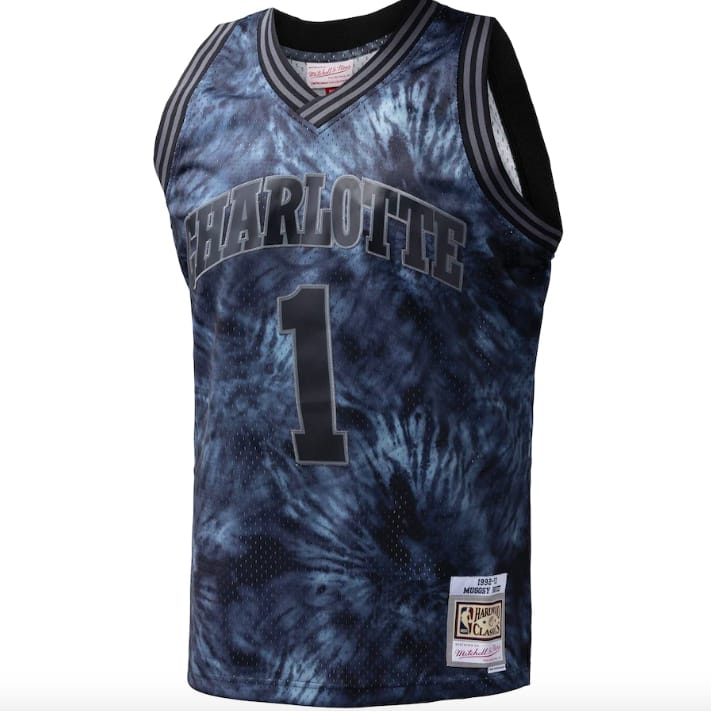 - Баскетбольная джерси 1992-93 Charlotte Hornets #1 Muggsy Bogues Hardwood Tie-Dye Swingman Black Jersey