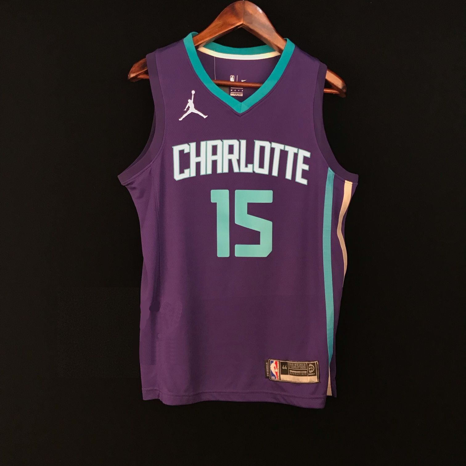 Фиолетовая расцветка джерси баскетбольного игрока Кембы Уокера из команды Шарлотт Хорнетс. На груди номер 15 и прозвище команды Hornets. Издание Statement Edition сезона 2017-18г.- Качество: swingman