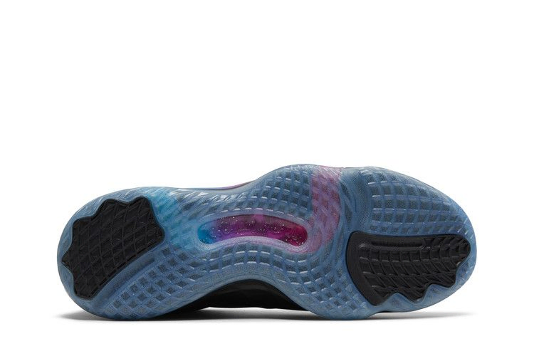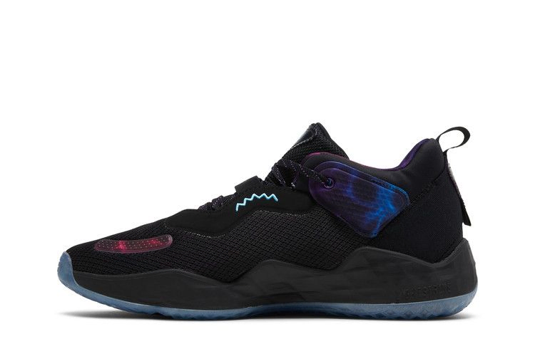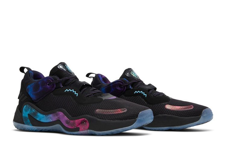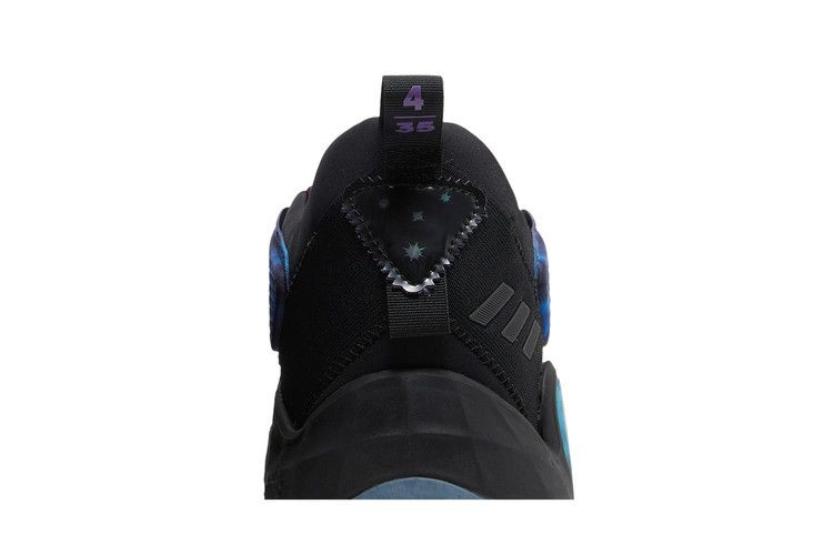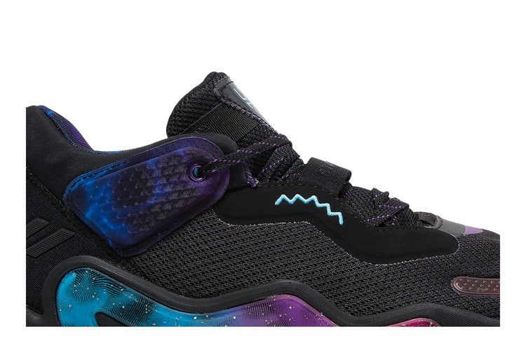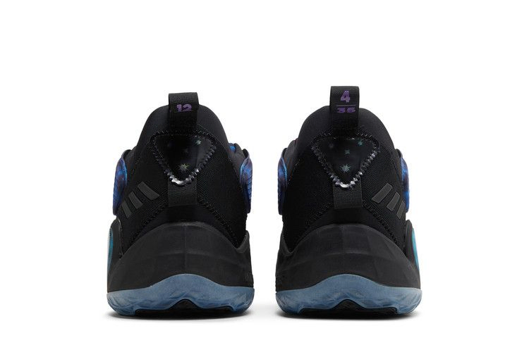 Модель adidas D.O.N. Issue #3 "Stars of Utah" выполнена в небесной тематике и отдает дань уважения родному штату Донована Митчелла. Фирменная обувь спортсмена выполнена из воздухопроницаемой черной сетки с фиолетовыми, синими и красными акцентами, вдохновленными звездным ночным небом над Бонневильской соляной равниной в Юте. Эластичный ремешок обхватывает пятку для поддержки задней части стопы, а боковая часть TPU встроена в промежуточную подошву Lightstrike для улучшения стабильности при движении из стороны в сторону. Подошва из полупрозрачной резины обеспечивает надежное сцепление с поверхностью.