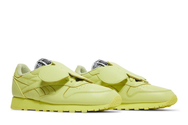 Модель Eames Office x Reebok Classic Leather 'Cool Aloe' взята из коллекции обуви, созданной в сотрудничестве с культовой дизайнерской студией. Однотонная расцветка ретро-силуэта украшена декоративной деталью в виде слона Имс, созданного Рэем и Чарльзом Имс в качестве детской игрушки и табурета. Знаковый пахидерма сидит на шнурке и имеет тот же желтый оттенок, что и кожаный верх и промежуточная подошва EVA. Двойной брендинг Reebok и Eames украшает тканый язычок и индивидуальный носок.