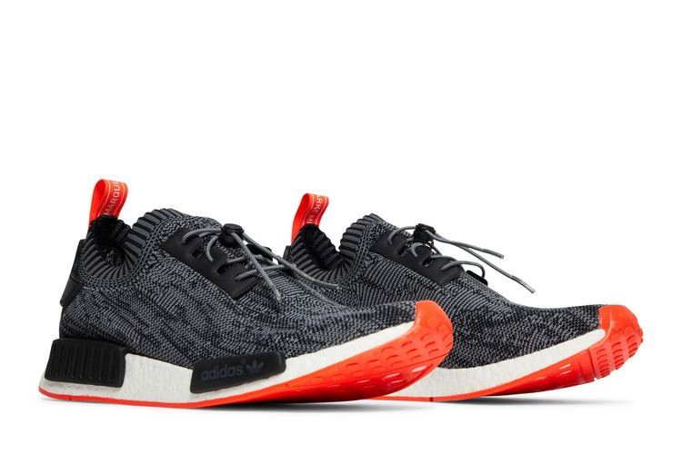 adidas усовершенствовал минималистичный дизайн NMD R1, сократив его до самого необходимого. Верх кроссовок выполнен из угольного материала Primeknit и представляет собой конструкцию "слип-он", в которой отсутствует традиционная система шнуровки, а вместо нее используется упрощенная застежка-тогл. На белой промежуточной подошве Boost, обеспечивающей амортизацию, размещены оранжевые акценты на язычках и подошве для огненного контраста.