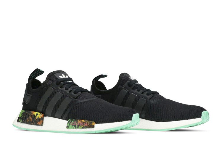 adidas создал кроссовки NMD_R1, чтобы отдать дань уважения наследию бега 80-х и будущим технологиям производительности. Эта версия, представленная в мае 2019 года, оснащена черным ботинком из материала Primeknit с вшитыми полосками Three-Stripes и неопреновой подкладкой. Двуязычный брендинг на вставке и трилистники на язычке и пятке выделяются на контрасте. Основа состоит из промежуточной подошвы Boost, заглушки EVA с графикой пальмы и резиновой подошвы с цветовым рисунком.