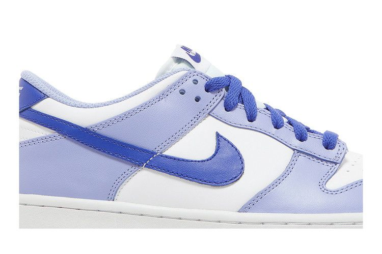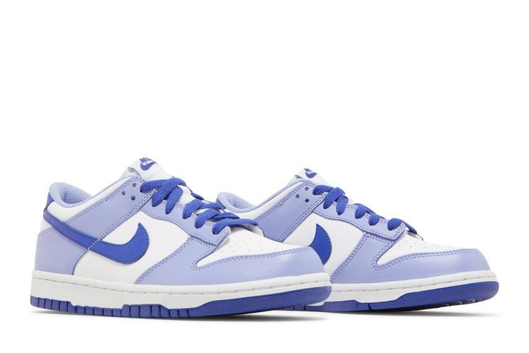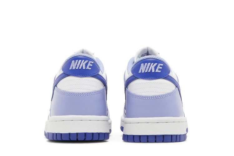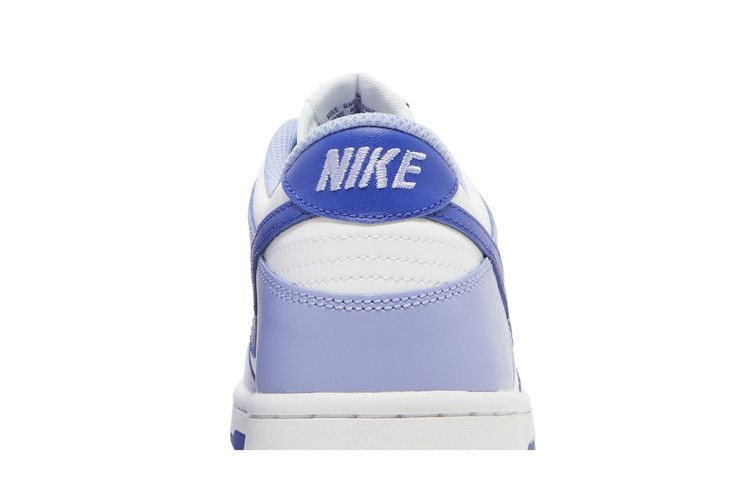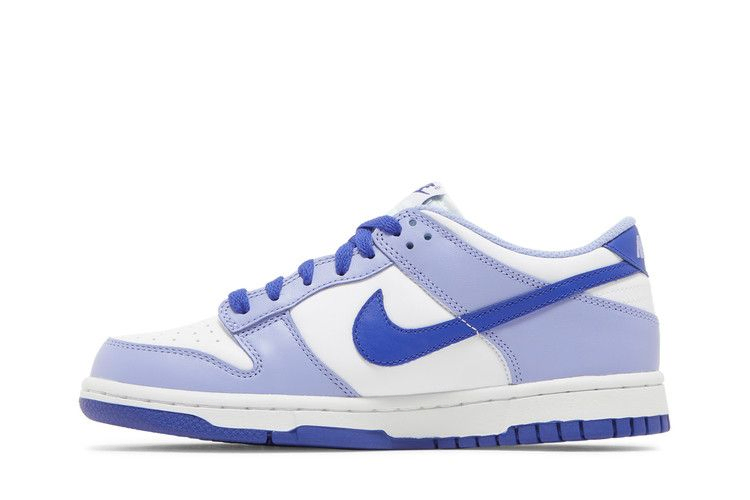 Nike Dunk Low PS "Blueberry" с тональными акцентами в детской эксклюзивной расцветке баскетбольных кроссовок. Верхняя часть кроссовок выполнена из гладкой кожи и сочетает в себе белую основу с накладками на носочной и пяточной частях в цвете Light Thistle. Более темный оттенок Lapis используется для шнурков, Swoosh и язычка на пятке с логотипом Nike. В основе кроссовок лежит прочная резиновая подошва, выделенная белыми боковинами и внутренним клином из пеноматериала для комфортной посадки. Подошва из резины темно-синего цвета обеспечивает надежное сцепление с поверхностью.