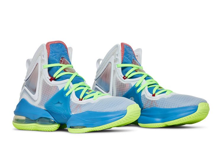 Созданные для больших детей, Nike LeBron 19 GS "Tropical" обновляют фирменную обувь Леброна Джеймса яркими акцентами. Верхняя часть из белого полупрозрачного текстиля оснащена эластичным внутренним рукавом и вставкой из тесьмы на пятке. Неоново-зеленые шнурки пропущены через синие крылья из TPU, которые обхватывают боковые стороны стопы для лучшей фиксации. Промежуточная подошва Cushlon обеспечивает отзывчивую амортизацию Zoom Air в передней части стопы и 360-градусный блок Max Air под пяткой.