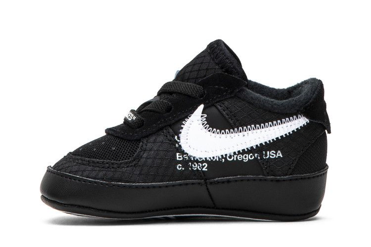 Nike сотрудничает с Off-White Вирджила Аблоха, чтобы выпустить эксклюзив для малышей. Модель Off-White x Air Force 1 Low CB 'Black' имеет черный сетчатый верх с дышащими оконными панелями на носочной части. Низкая модель также имеет кожаные и замшевые акценты на кончике глаза и язычке, пришитый белый Swoosh и надпись "NIKE" белого цвета на толстой мягкой подошве.