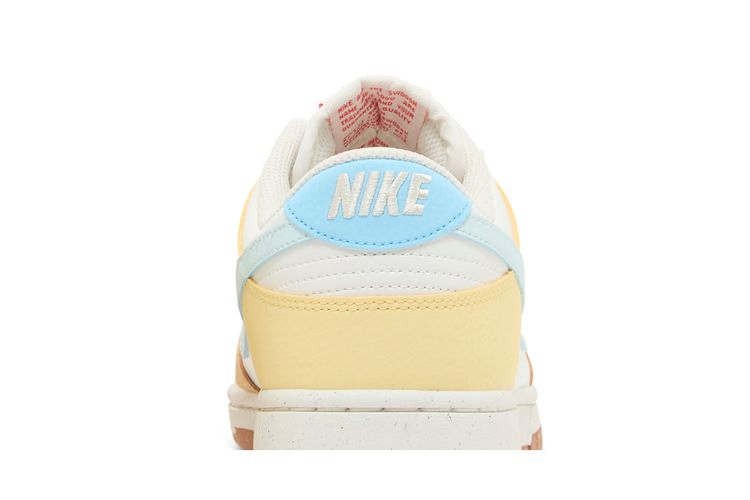 Женские кроссовки Nike Dunk Low Next Nature "Soft Yellow Aquarius Blue" выполнены из прочной искусственной кожи и имеют белую основу с накладками на носке и пятке бежевого и бледно-желтого оттенков. Пастельные голубые оттенки выделяют фирменный логотип Swoosh и задник, украшенный вышитой надписью Nike. Резиновая подошва с белыми боковыми стенками и подошвой из жевательной резины частично изготовлена по технологии Nike Grind.